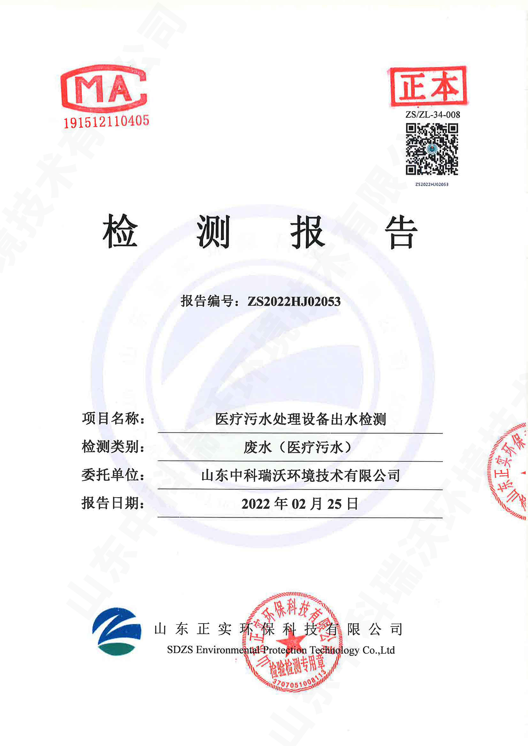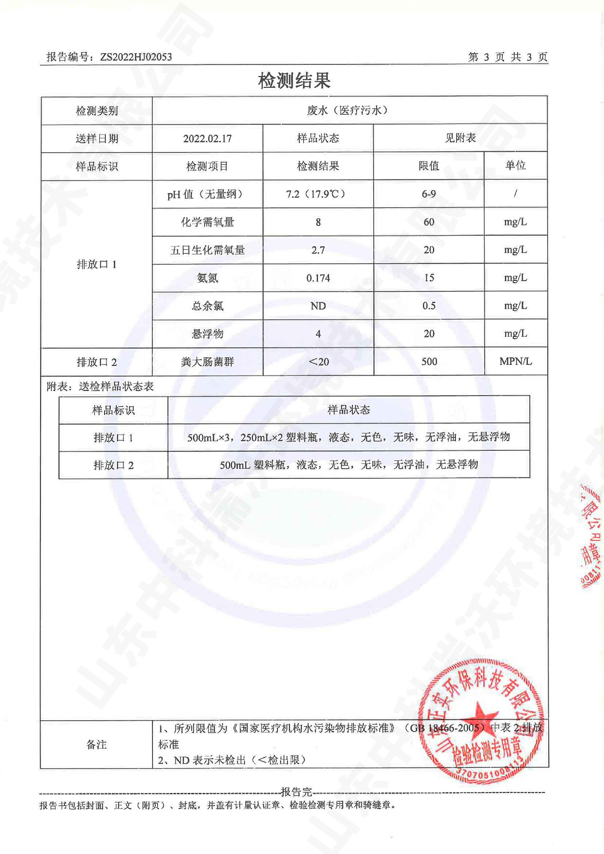 醫(yī)療污水處理設(shè)備出水檢測(cè)報(bào)告