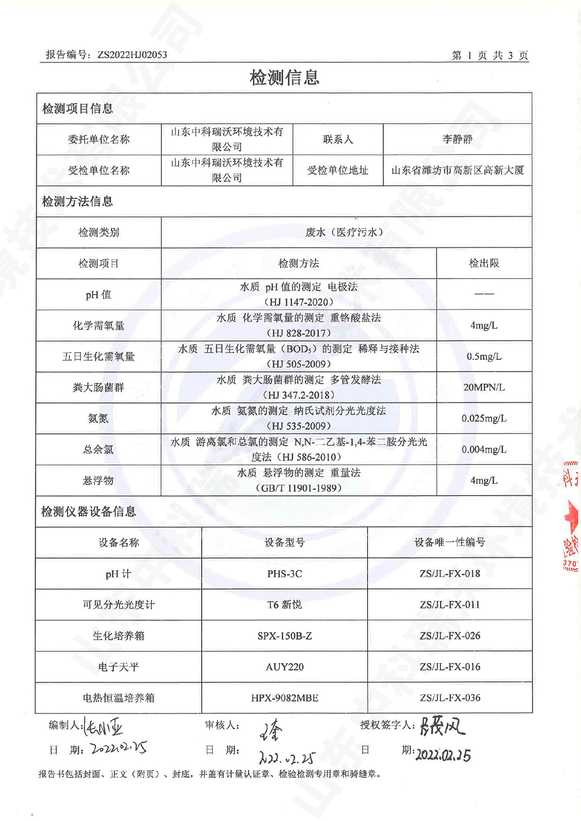 實(shí)驗(yàn)室廢水處理設(shè)備出水檢測(cè)報(bào)告