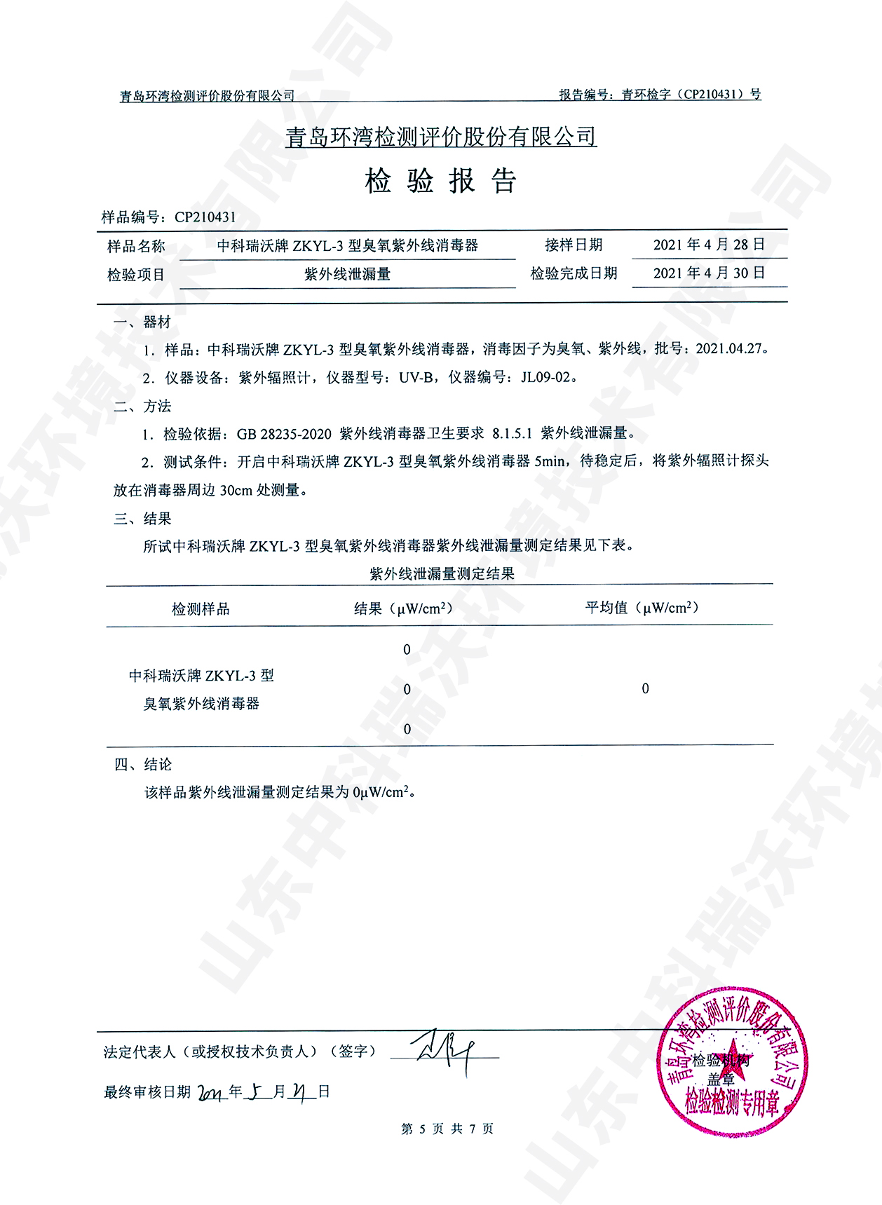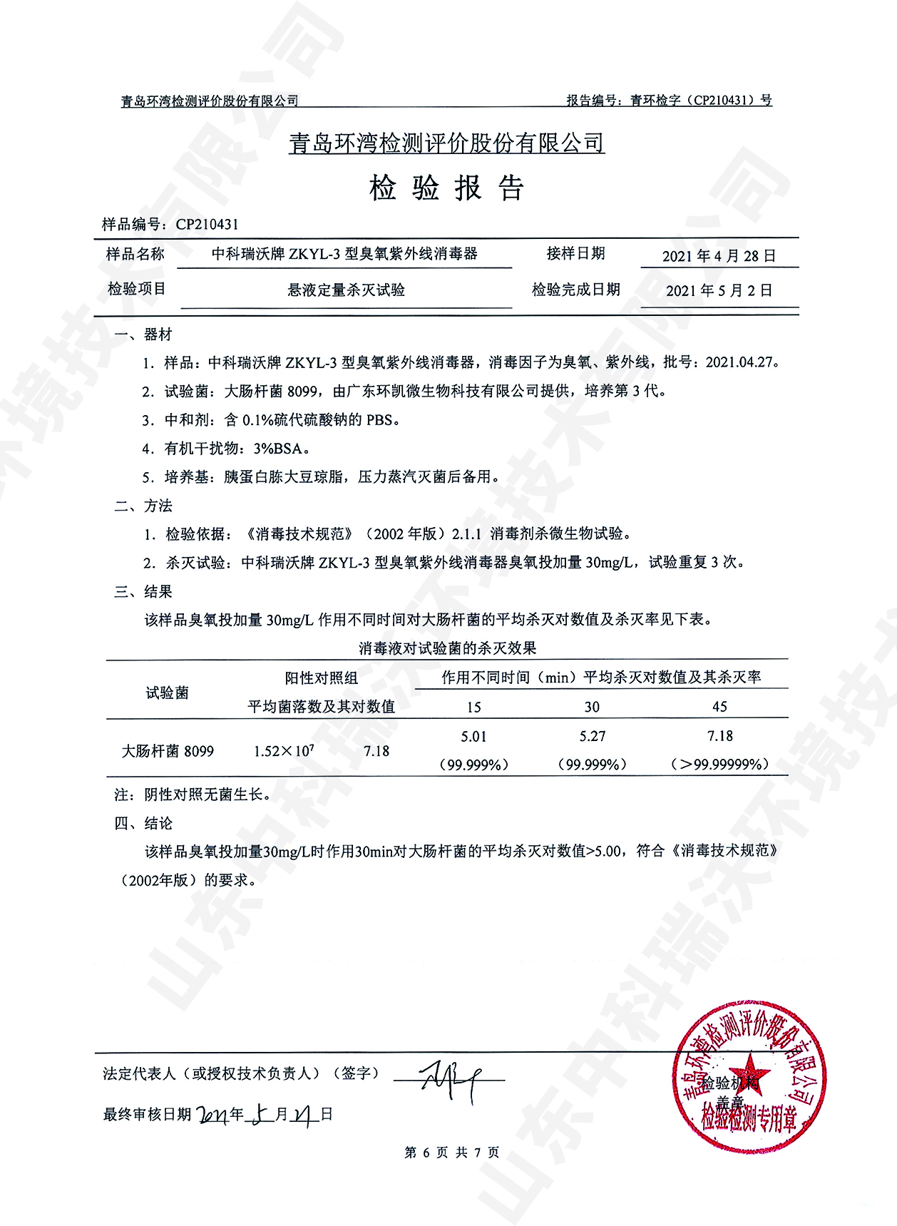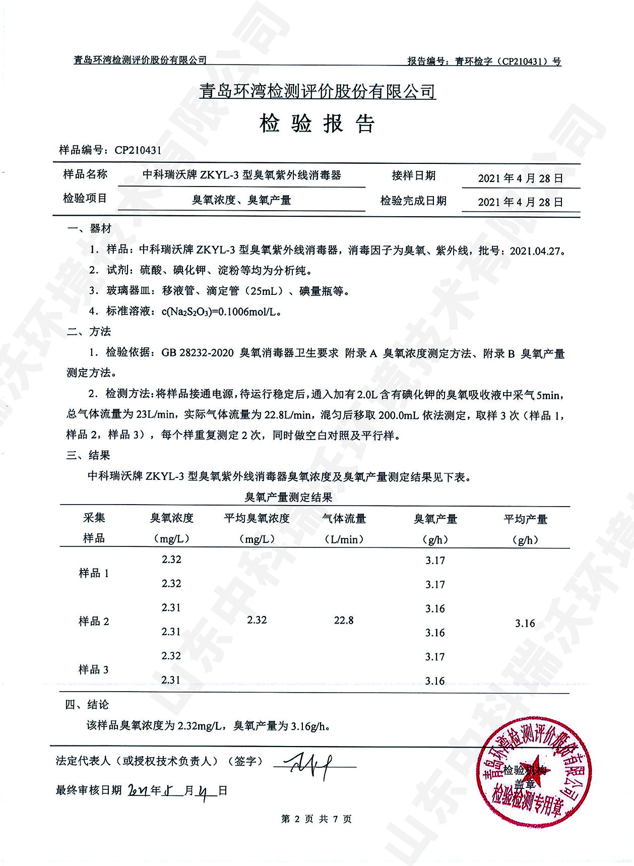 醫療污水處理設備檢測報告~臭氧消毒